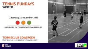 Op zaterdag 22 november houden we in sporthal Den Boer de Tennis Fundays wintereditie voor recreatieve jeugdspelers in de kleuren rood, oranje en groen. Rood en oranje starten om 09.00u, groen om 11.00u. Inschrijven kan nog t.e.m. 18 november. |